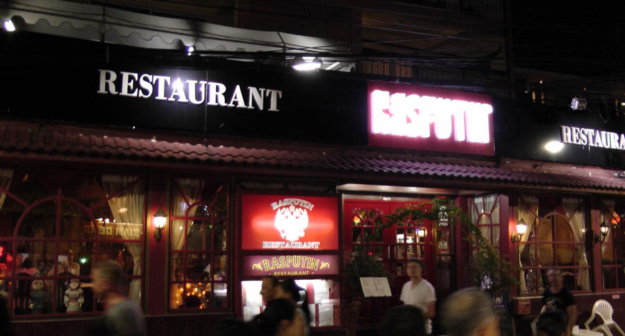 Сюда любят ходить и русские гости, и иностранные туристы, и даже тайцы. Обслуживание вежливое, заказ приносят быстро. Для своих гостей шев-повар «Распутина» готовит не только привычные русские блюда, но также тайскую и европейскую еду. Это заведение не из дешевых, но высокий сервис и качество блюд полностью оправдывают потраченных денег.