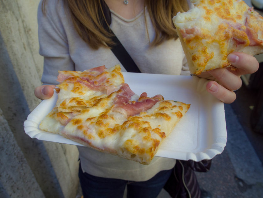 Большинство путешественников среди многочисленных блюд итальянской кухни отдаёт предпочтение именно пицце. Италия — родина пиццы и готовят её здесь так, как нигде больше в мире. Итальянские повара превращают обычный кусок теста в истинное произведение кулинарного искусства. Пиццерий в Риме — великое множество. Здесь вам предложат как знаменитую во всём мире круглую пиццу, так и прямоугольную, которая режется на квадраты и готовится специально «на вынос».