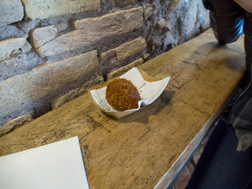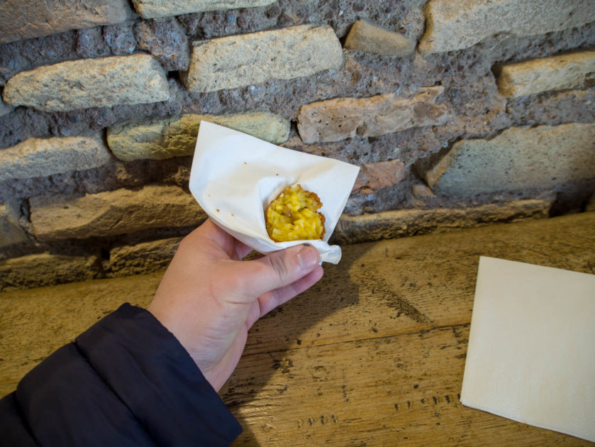 Послушав на свою беду одного блоггера-гида, за супли мы отправились в Supplizio (кстати, переводится как мучение, страдание, наказание, пытка). Мало того, что мы отдали в 3 раза больше, чем они стоят в других местах (3 евро за 1 штуку), так еще и рис был недоваренный, а сами супли — пережаренными.