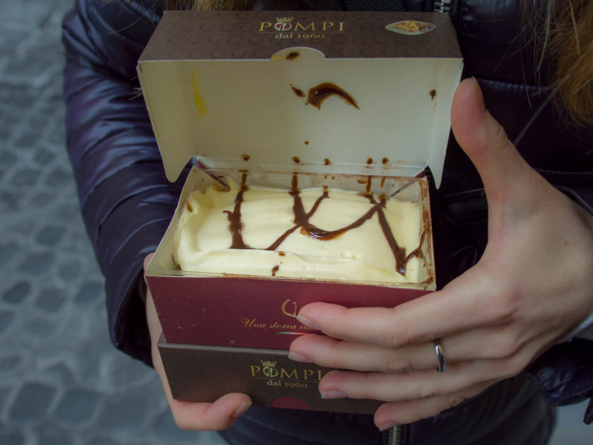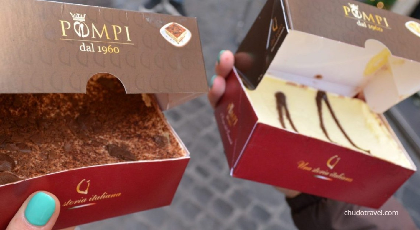 Только в Риме Вы можете попробовать тирамису клубничный, банановый или фисташковый. Да не абы где, а в кондитерской с более чем 50 летней историей. Кондитерская Pompi имеет несколько локаций, одна из которых рядом с Испанской лестницей. Отдельное удовольствие посидеть на лестнице, вкушая этот невероятный десерт.