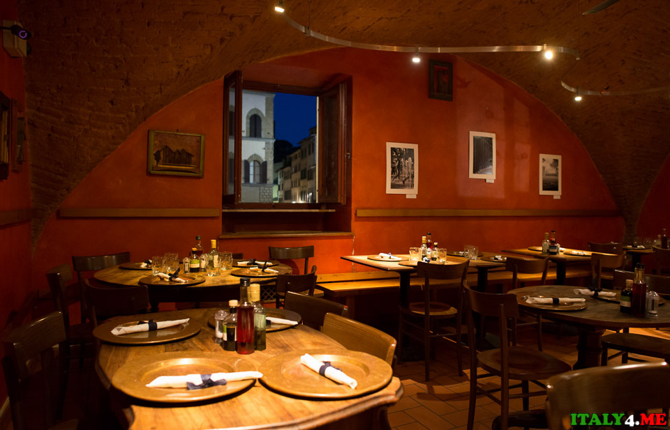 Это трактир находится совсем недалеко от центра Флоренции, рядом с мостом Santa Trinità (на русском мост «Святой Троицы» — прим. переводчика). Это место примечательно тем, что здесь не просто итальянская кухня, а именно местная (региона Тоскана), в частности знаменитый стейк «Фьорентина» (не путать с футбольным клубом). Переводчик именно её и отведал, но она показалась ему среднего качества. А вот местное красное вино под названием Кьянти было лучше среднего. Ресторанчик среднего размера и был полностью забит народом, хотя это был обычный рабочий день. Местные итальянцы сказали, что здесь всегда так, поскольку он пользуется популярностью у народа. Следовательно, если соберётесь туда пойти, бронируйте места заранее.