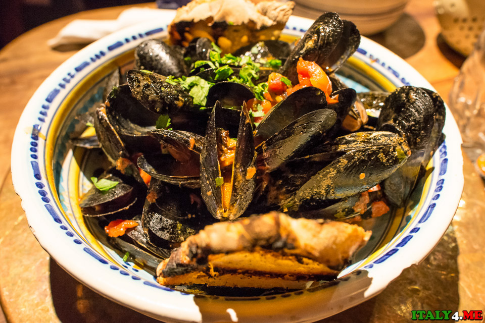 Ищем в меню в разделе Antipasti (Антипасто, разминка перед главными блюдами) ZUPPA DI COZZE PANE AGLIATO за 10 евро – это очень дешево, но вы еще не видели размер порции и не пробовали на вкус.