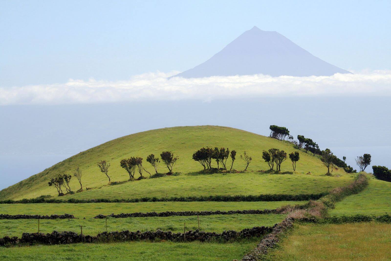 Над этим довольно крупным островом гордо возвышается одноименный вулкан. Хотя, если говорить по уму, то весь остров — это и есть вулкан, точнее даже — его верхушка. Высота 2351 делает Пику самой высокой горой Португалии и одним из крупнейших вулканов Атлантики. Но это лишь верхушка айсберга! Самое интересное скрыто от наших глаз: Пику является горой с самой большой подводной частью в мире — 6098 метров. Итого вулкан уступает Эвересту лишь 400 метров по высоте. На вулкан можно подняться — это мероприятие не самой большой сложности и требует лишь половины дня.