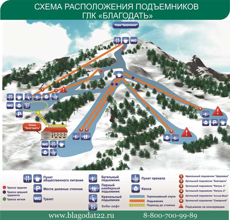 В Белокурихе найдет себе трассу по душе как новичок, так и профессионал. Даже дети здесь не заскучают. На курорте постоянно проходят веселые мероприятия, устраивается конкурс ледяных скульптур. Отдых в горнолыжном комплексе «Благодать» оставит в памяти лишь приятные воспоминания.