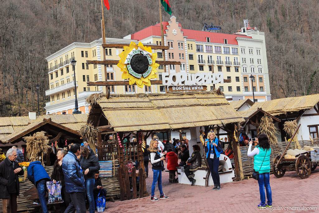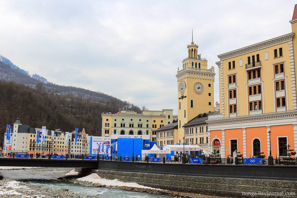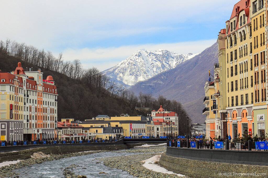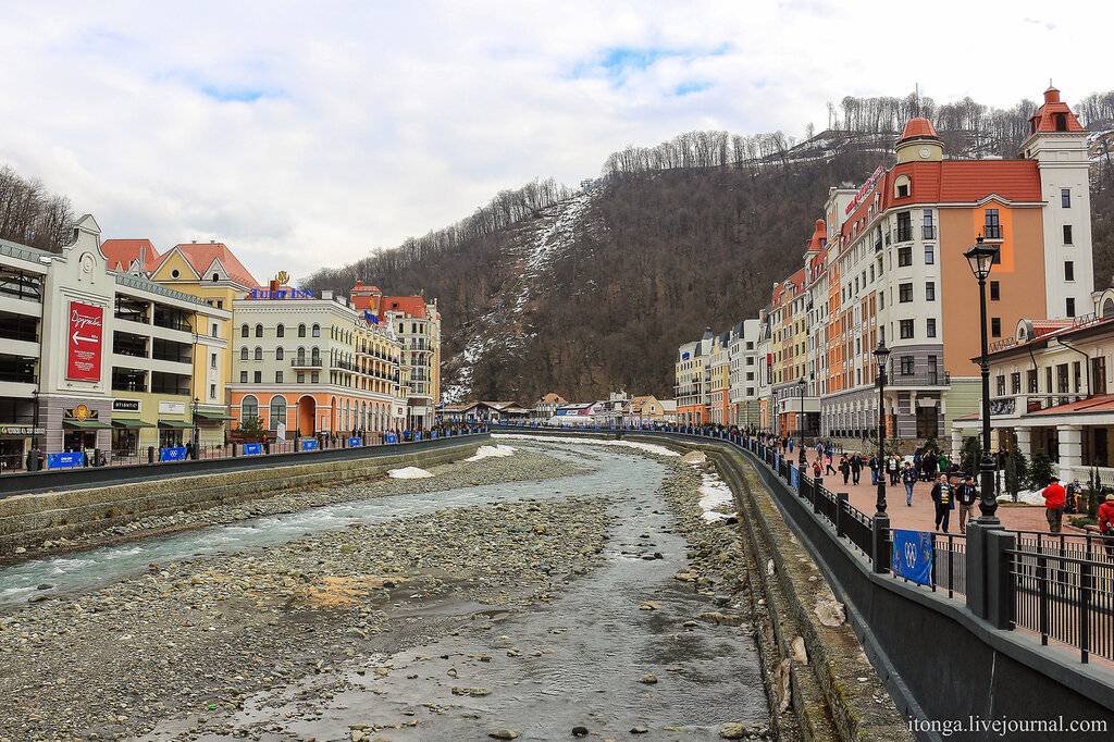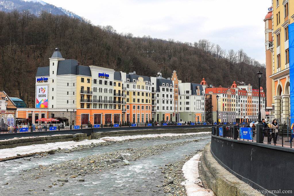 Архитектура зданий так напоминает Швейцарию, на набережной так чисто и уютно, что прислушиваясь к проходящим мимо людям, можно услышать: «Ребята, я много ездил по Европе. Да она по сравнению с Розой Хутор отдыхает. Здесь круче!»