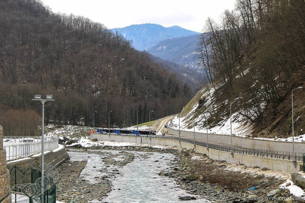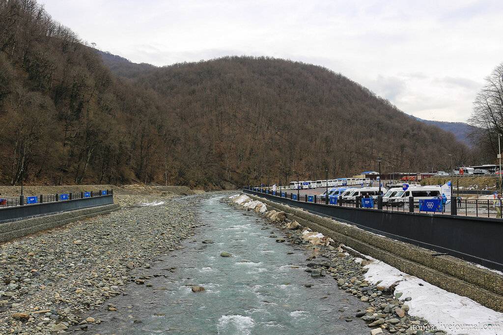Курорт Роза Хутор на Красной поляне находится вдоль берегов реки Мзымта которые соединяют несколько мостов.