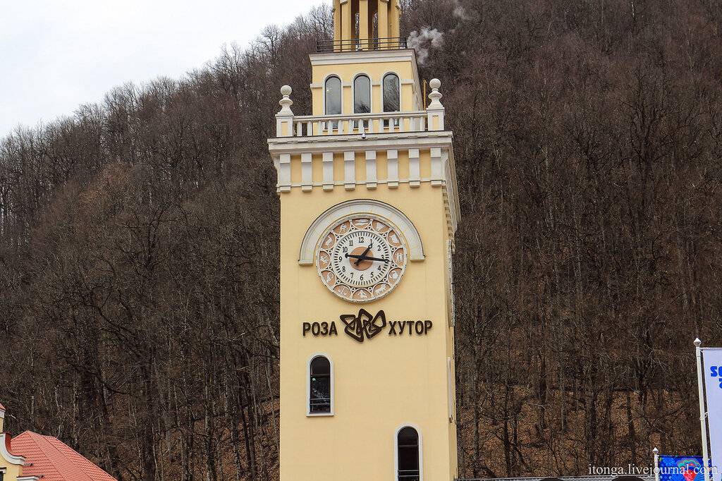 Это самая первая локация, которую посещают туристы. Это самый конец поселка Эстосадок и самая дальняя точка Сочи в долине реки Мзымты. По берегам этой горной реки находятся отели, концертный зал и большой этнопарк «Моя Россия». Главное украшение и доминанта — ратуша. Она находятся на площади Розы, это башня с часами, ставшая одним из символов Розы Хутор. К Новому году перед ней устанавливают елку и украшают территорию.