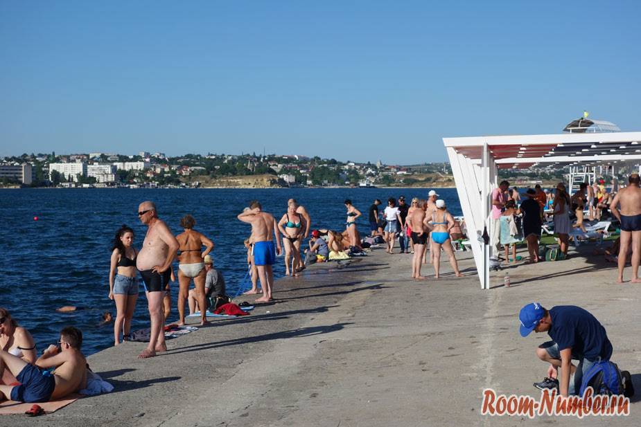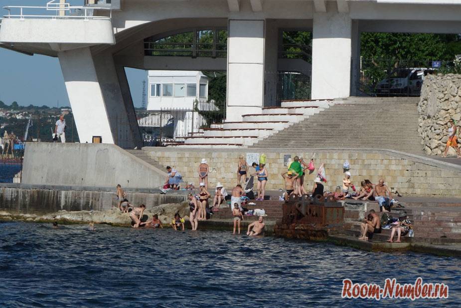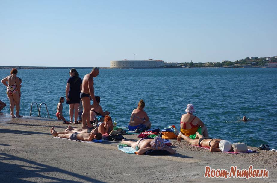 Где купаться в самом Севастополе и реально ли это? Спросите вот у этих бабулек, которые знать не знают о каком-либо комфорте и загорают прямо на асфальте, где мимо них постоянно кто-то ходит.