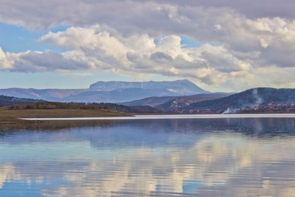 Огромное водохранилище, с одной стороны которого отвесные скалы, а с другой стороны мягкие песчаные берега называют Симферопольским морем.