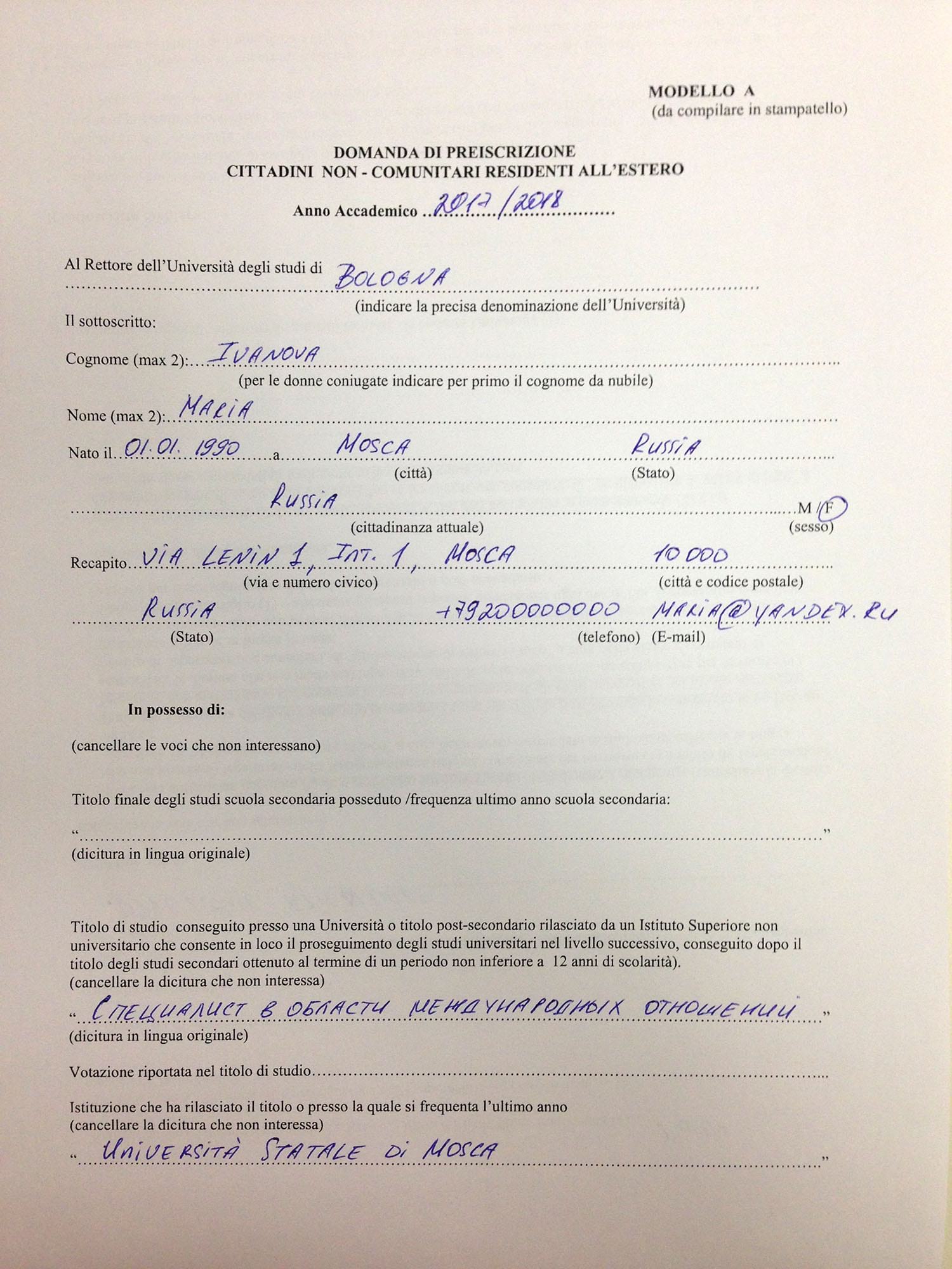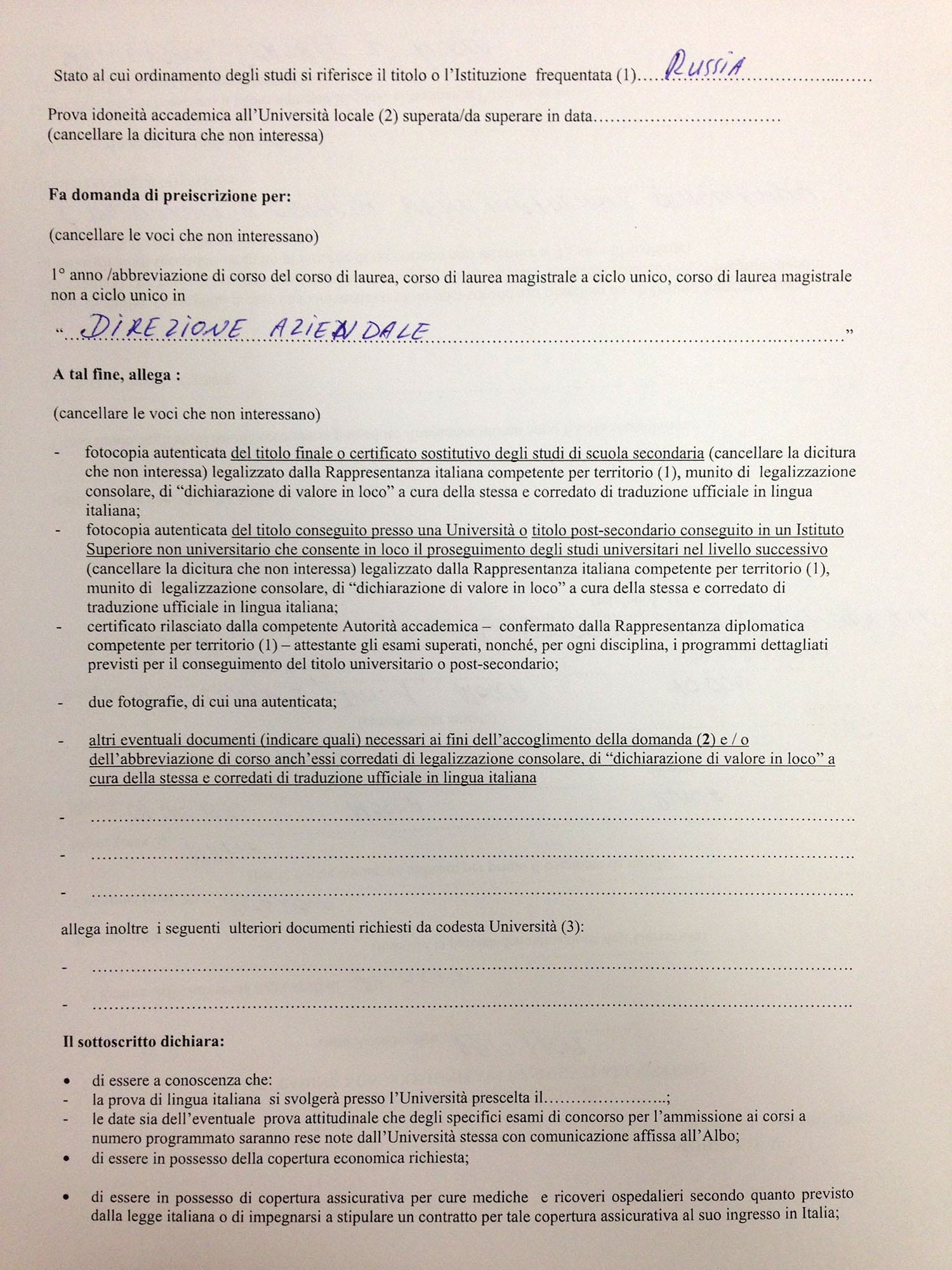 - Визовая анкета, заполненная на бланке итальянского консульства;