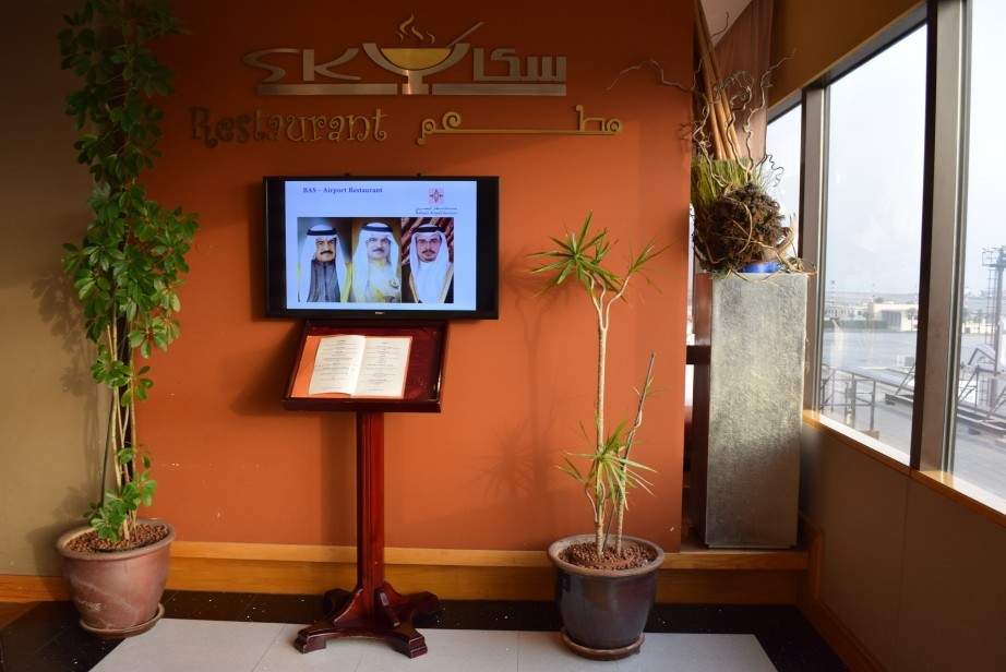 Для того чтобы попасть в ресторан аэропорта, нужно подойти к стойке регистрации компании Gulf Air, где вам на билете напишут пометку о том, что вы можете воспользоваться данной услугой. Потом нужно подняться на лифте на четвёртый этаж аэропорта и предъявить на ресепшене свой билет с этой меткой. Так выглядит вход в ресторан международного аэропорта Бахрейн.
