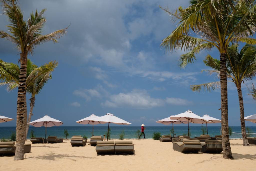 Выход к морю здесь свободный, лежаки стоят недорого, всего двести местных донгов. Только у некоторых отелей пляж может быть закрыт.