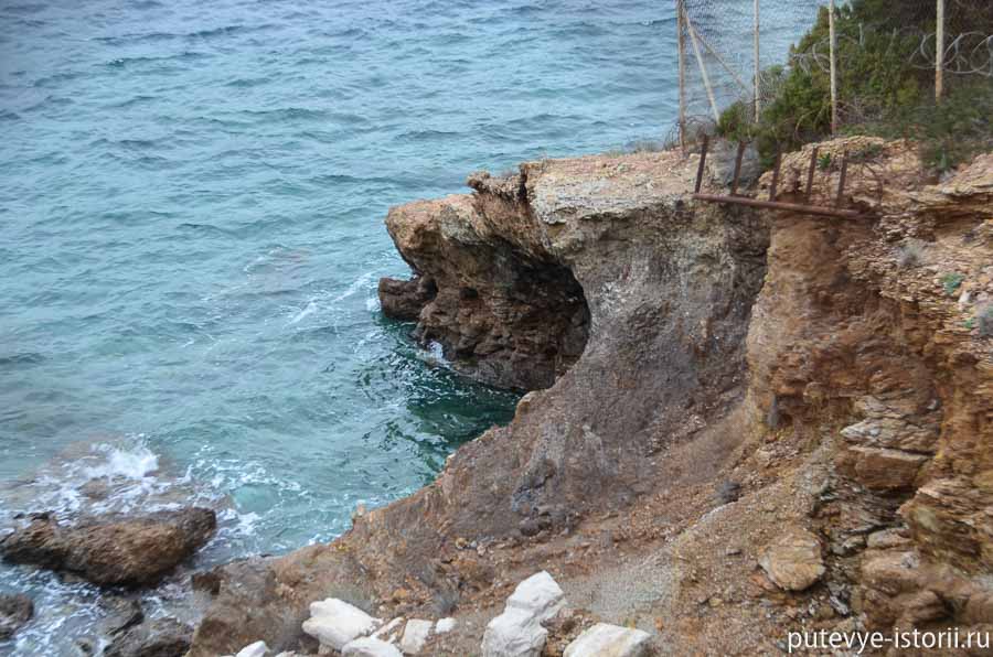 Скалы, с одной из которых бросился несчастный Эгей, встают прямо из морских волн.