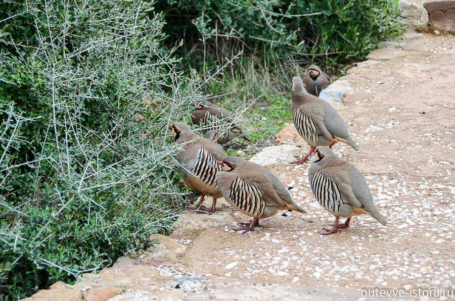 От городских сооружений сохранились в основном фундаменты. Можно увидеть, как пролегали улицы древнего поселения. Когда-то здесь стоял большой гарнизон, и кипела жизнь. Но во время нашего пребывания между фундаментов гуляли только ветер да жизнерадостная стайка пёстрых куропаток.