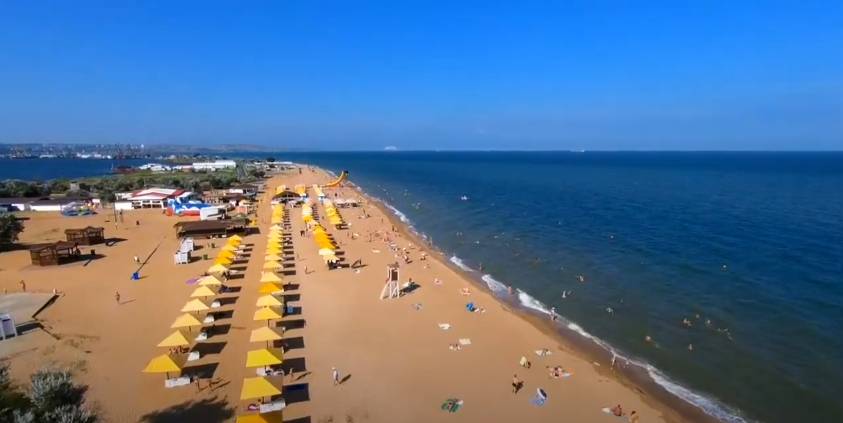 Расположен в 12 км от города.Это место очень нравится туристам. Длина пляжа составляет 3000 метров, ширина- 100 м. Поверхность берега песчаный, вход в воду очень комфортный. Имеется различные аттракционы для посетителей. Взрослым предназначены такие развлечение как: дайвинги или аренда катамаранов, для детей- батуты и аттракционы.