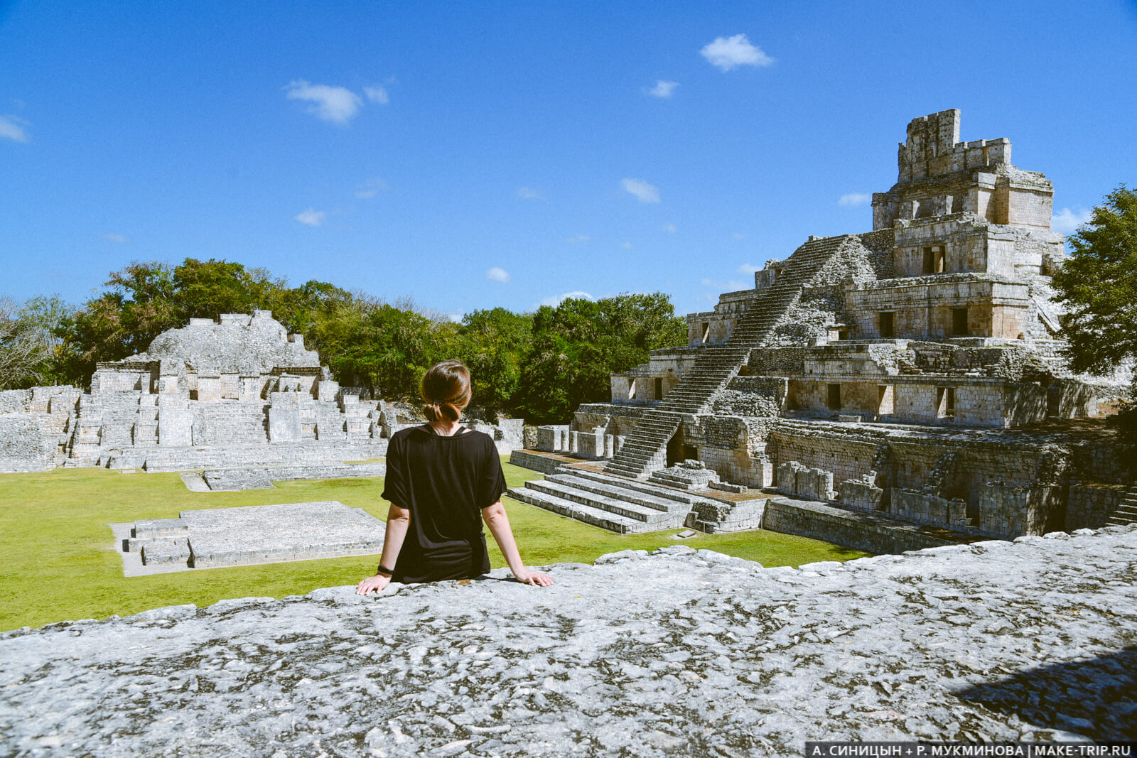 В Мексике мы посетили десятки интереснейших руин городов майя. На фото: Рената любуется храмом Пяти уровней в Эцне.