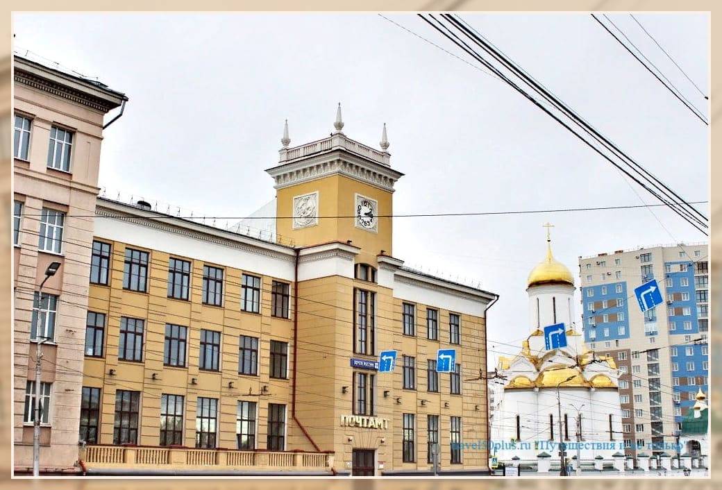 Пр. Ленина, 17. Строгое здание, построенное на заре советской эпохи, находится на пересечении Ленина и Почтовой. Автор проекта — московский архитектор Г. Гурьев-Гуревич. Нынешний классический облик почтамт приобрел в 1957 году после реконструкции. Тогда же установили башенные часы.