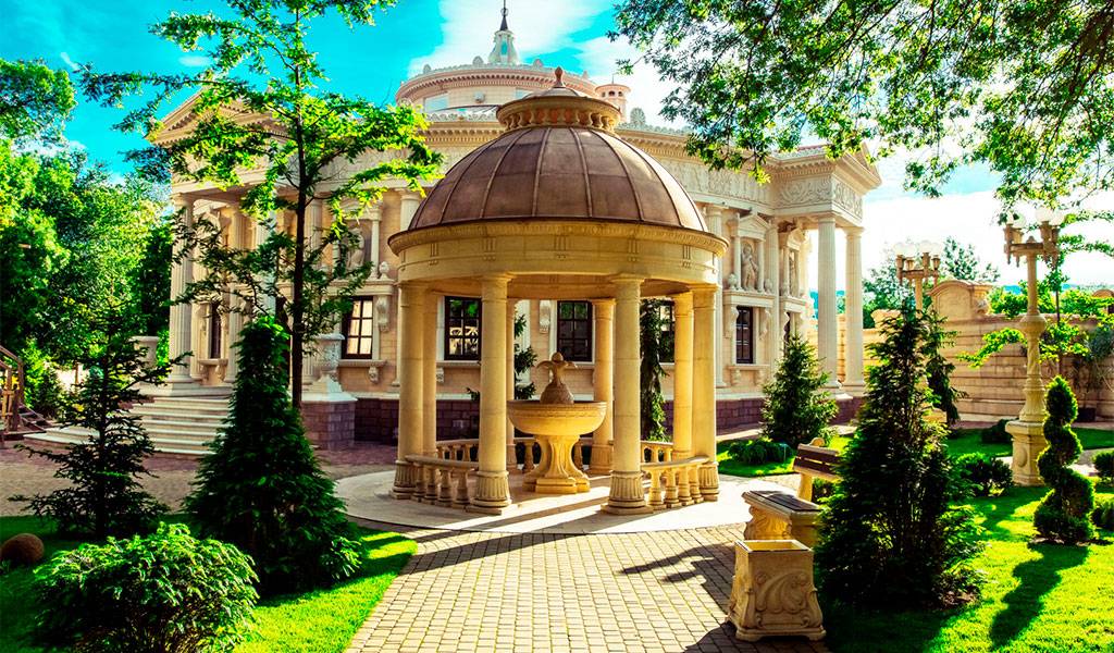 Казачий курень — это уютный комплекс с водоемами, фонтанами и мостиками