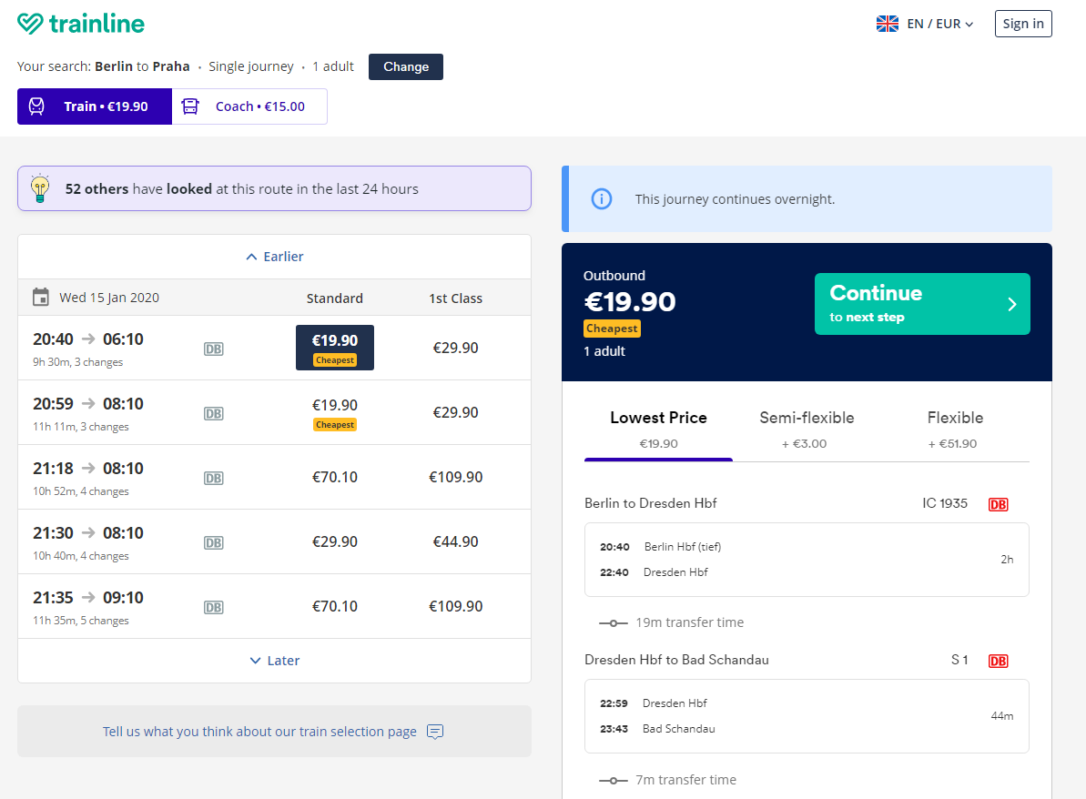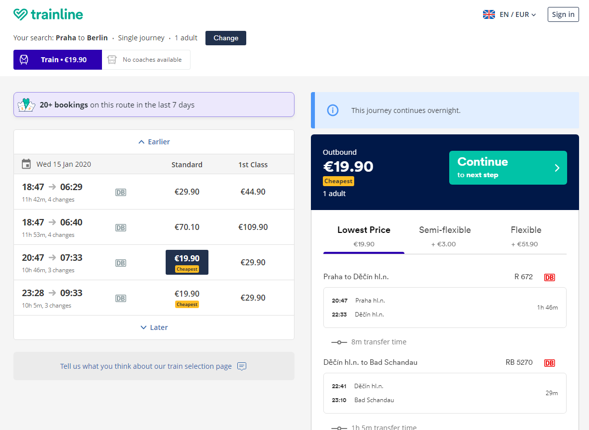 Если вы переживаете за проблемы с общением с продавцами и не знаете как купить билет из Праги до Берлина в терминале вокзала, рекомендуем купить их заранее онлайн, например на thetrainline.com. Проект только на английском языке, поэтому мы подготовили пошаговую инструкцию как купить билет на поезд из Праги в Берлин.