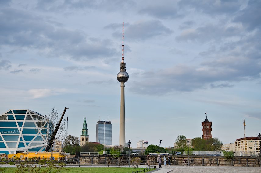 В центре возвышается великая берлинская фернзехтурм , или телебашня, высота которой 365 м, видна со всего города.! На высоте около 200 метров над уровнем моря находится смотровая площадка с панорамным видом, а также ресторан и вращающийся бар. Отсюда вид поистине чудесный, его нельзя пропустить! На закате шоу становится еще более впечатляющим , когда солнце садится и зажигаются огни города.