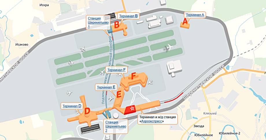 Схема аэропорта Шереметьево и терминалы Северного комплекса