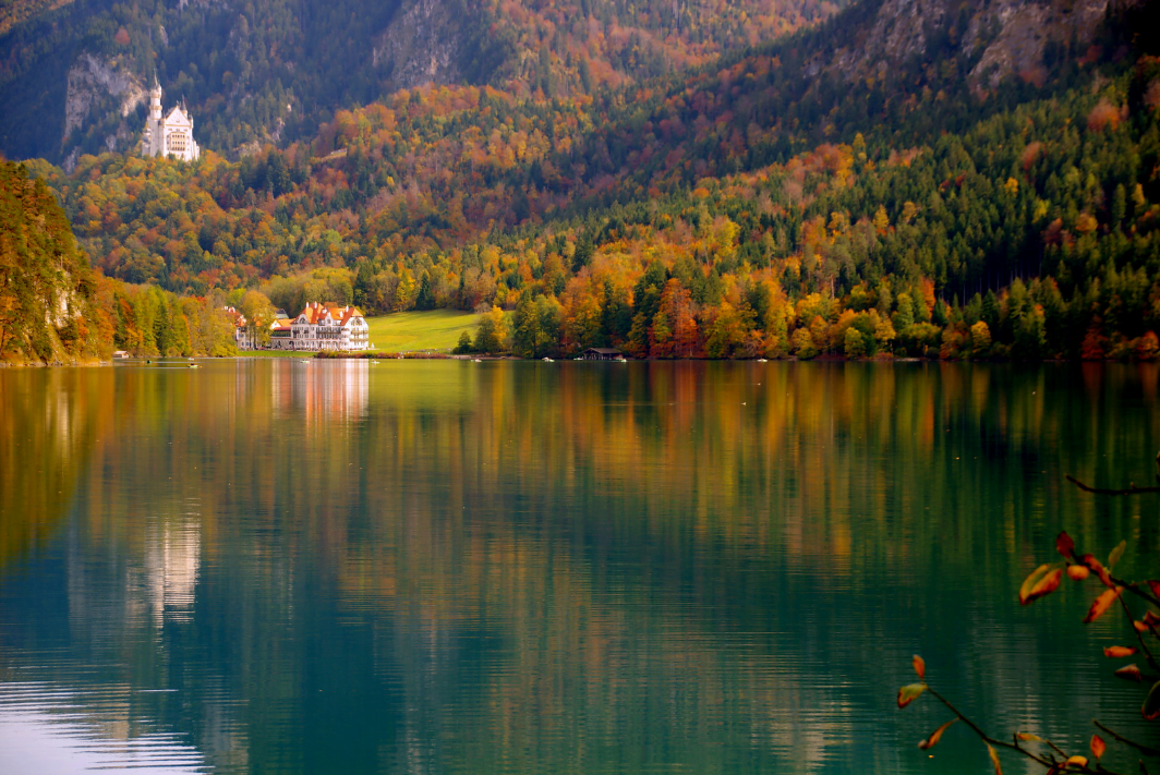 Здесь же находится озеро рядом с замком – Альпзее, где можно покататься на лодке или катамаране. С воды открывается захватывающий вид на оба замка, выглядывающих из-за макушек зеленых холмов.