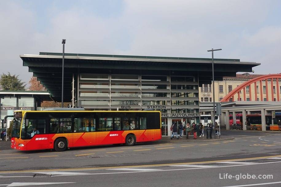 Расписание движения автобусов можно уточнить на официальном сайте или в кассе автостанции в Бергамо. К тому же автостанция и жд станция в Бергамо расположены вблизи друг друга, через дорогу.
