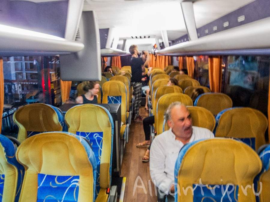 На автобус билет заранее покупать не надо, автобусы уезжают по мере заполнения, ходят каждые 30 минут, начинают автобусы ходить в 4.00. Вот он наш автобус, куда мы сразу и сели: