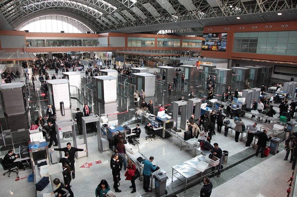 Попасть из здания аэропорта в зону вылета можно только через второй ярус, в обязательном порядке минуя металлоискатели и стойку таможенного контроля