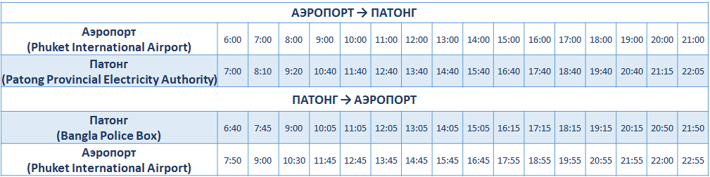 График работы: с 6:00 до 21:00 (из аэропорта). Полное расписание аэропорт ⇆ Патонг .