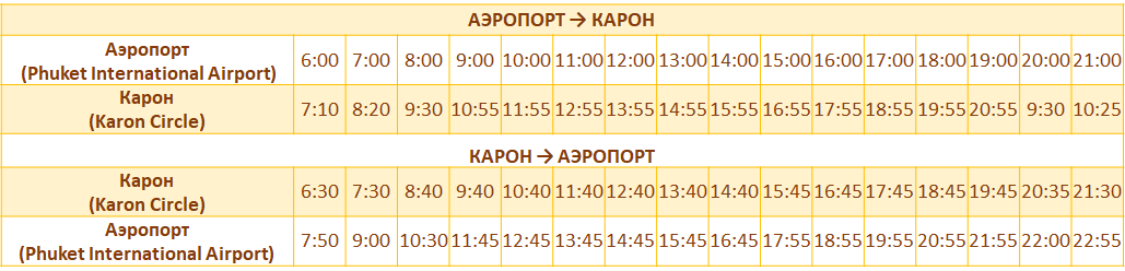 Расписание автобусов аэропорт Пхукета ⇆ Карон