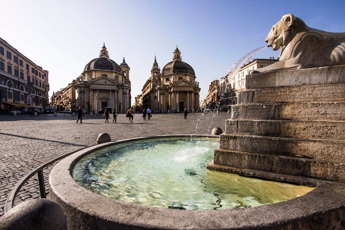 Эта площадь по размерам значительно превосходит другие римские площади. На Piazza del Popolo выделяется древний египетский 23-метровый обелиск (Фламиния), привезенный в Рим императором Октавианом Августом еще до н. э., и церковь Santa Maria del Popolo. Интерьер этой церкви украшен работами Рафаэля и Караваджо. Какая же римская площадь без фонтанов? Кроме центрального фонтана с четырьмя египетскими львами, по краям площади находятся еще два.