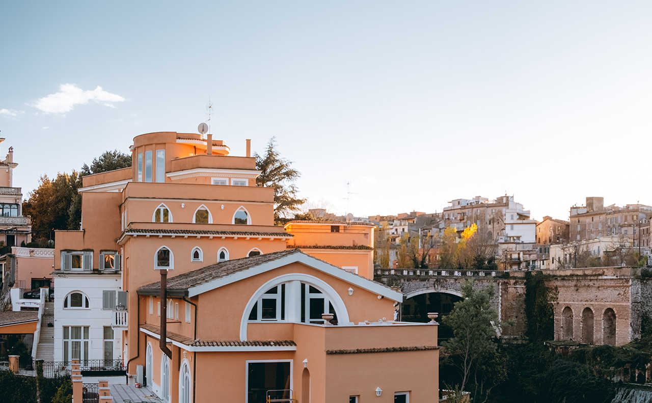 В зданиях-дворцах на площади находится элитная гостиница с термами (римскими банями).