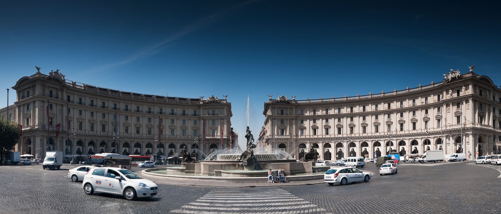За зданиями, окружающими привокзальную площадь Piazza dei Cinquecento площадь, привлекает внимание позолоченная статуя над базиликой Святого сердца Иисуса. Но наш путь лежит к Piazza della Repubblica с красивым фонтаном Наяд