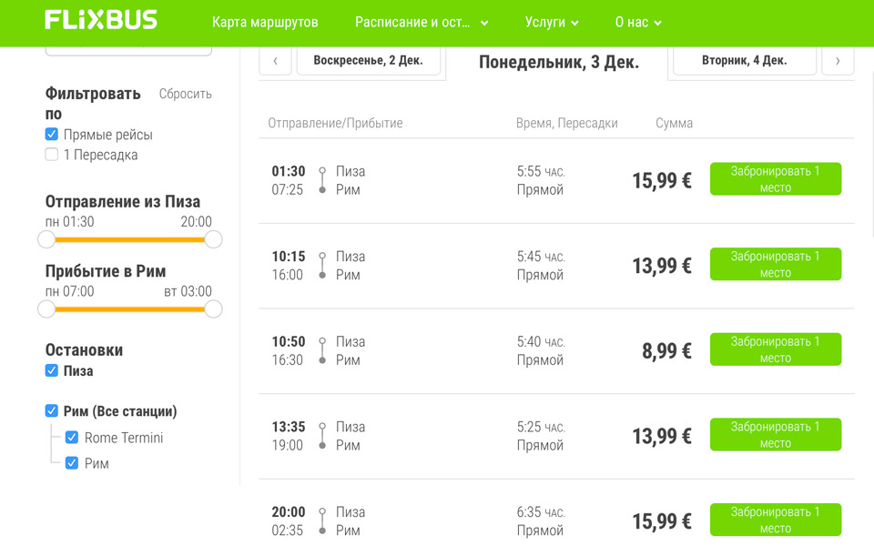 - На выбор предлагается меньше рейсов, чем у FlixBus.