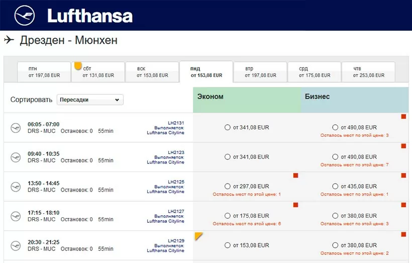 Билеты можно приобрести в точках продаж компании, в кассах аэропорта и на официальном сайте Lufthansa.