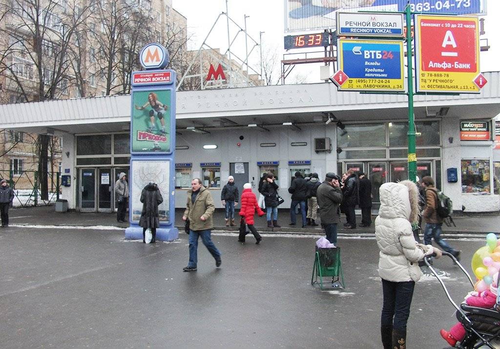 Чтобы попасть на остановку общественного транспорта у выхода со станции метро речной вокзал, понадобится доехать в подземке до Тверской и перейти на Театральную. Это центральные станции, заполненные народом постоянно. Большая часть людей тут – туристы, которые не особо хорошо ориентируются и создают толчею.