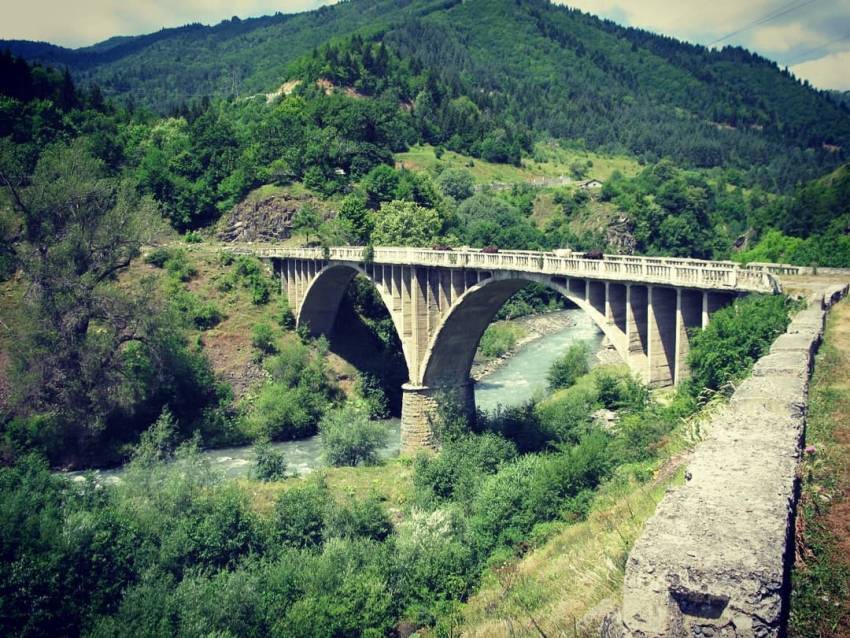 Весьма фотогеничное инженерное сооружение соединяет берега Большой Лиахвы у населенного пункта Гуфта (Дзаусский район). Мостовой переход – фрагмент Кударского шоссе. В советские времена (период богоборчества) лишь этот мост был «визиткой» данной местности, будучи изображенным на фотографиях, марках и открытках. Построен за очень короткий срок. Введен в эксплуатацию в 1929 году. Длина – 72 м. Высота – 22.