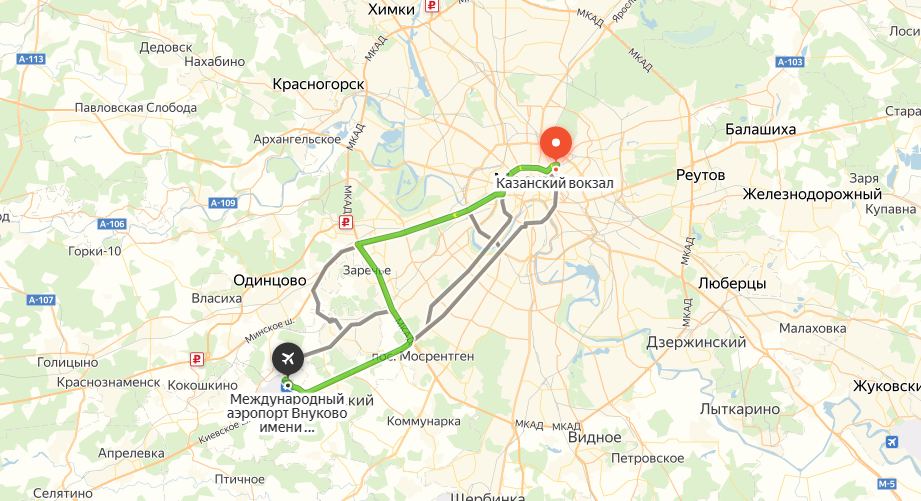 Казанский вокзал — Внуково: оптимальный способ добраться