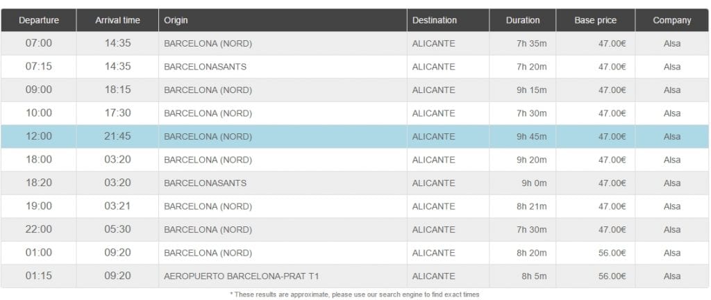 У маршрута с/до автостанции Аликанте с/до автостанции Бенидорма есть преимущество – несколько автобусов курсирует в ночное время (примерно каждые два часа после 00:00 часов), стоимость проезда при этом не меняется и составляет (на дату написания статьи) 4,75 Евро.