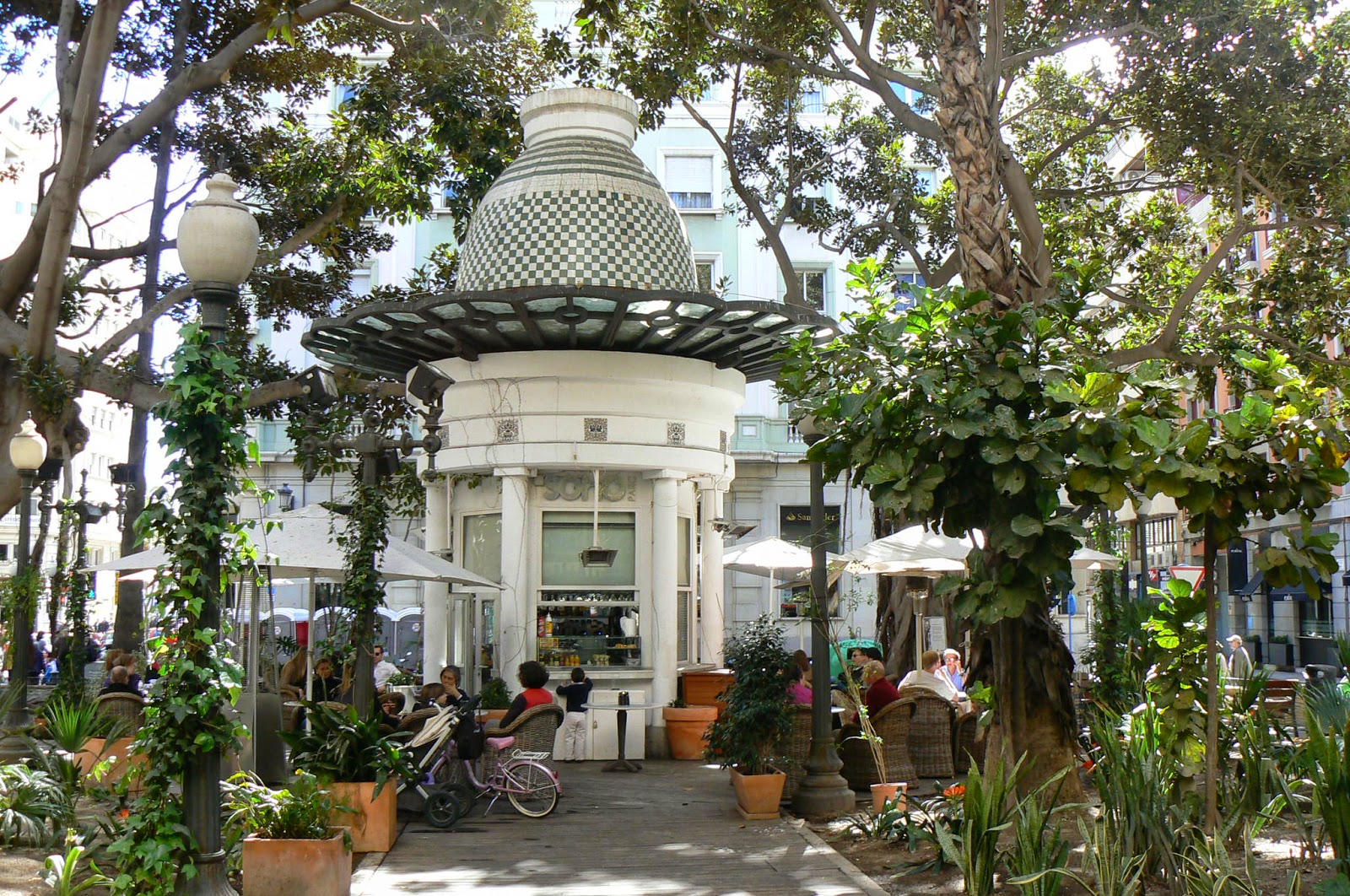 Старая площадь Портал-де-Эльче (Plaza del portal de Elche), спрятанная среди четырех фикусов-гигантов, которым уже по 150 лет, создает очаровательный контраст со строгостью предыдущего объекта. Здесь можно прерваться на приятные посиделки в кафе – место располагает.