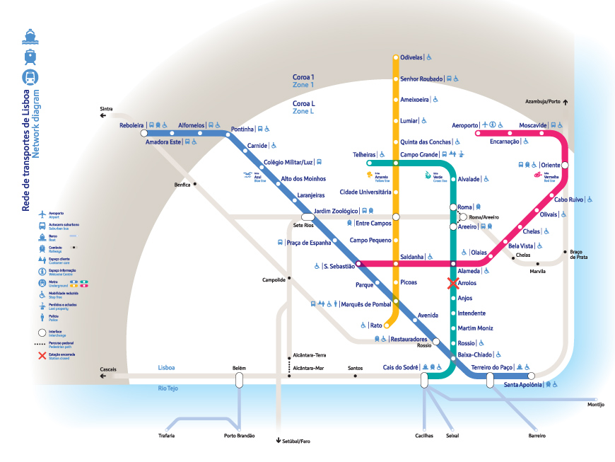 | Метро из аэропорта Лиссабона | Метро работает с 06:30 до 01:00 | Приблизительно 20 минут | 1.9 евро (0.5 – карточка, 1.4 – проезд) |