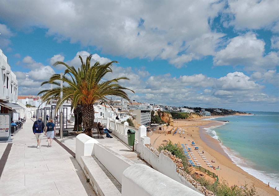 Альбуфейра – белый приморский городок с песчаным пляжем, отличными кафешками и прогулочными дорожками вдоль моря. В конце апреля купаться еще холодно, но загорать уже вполне можно.