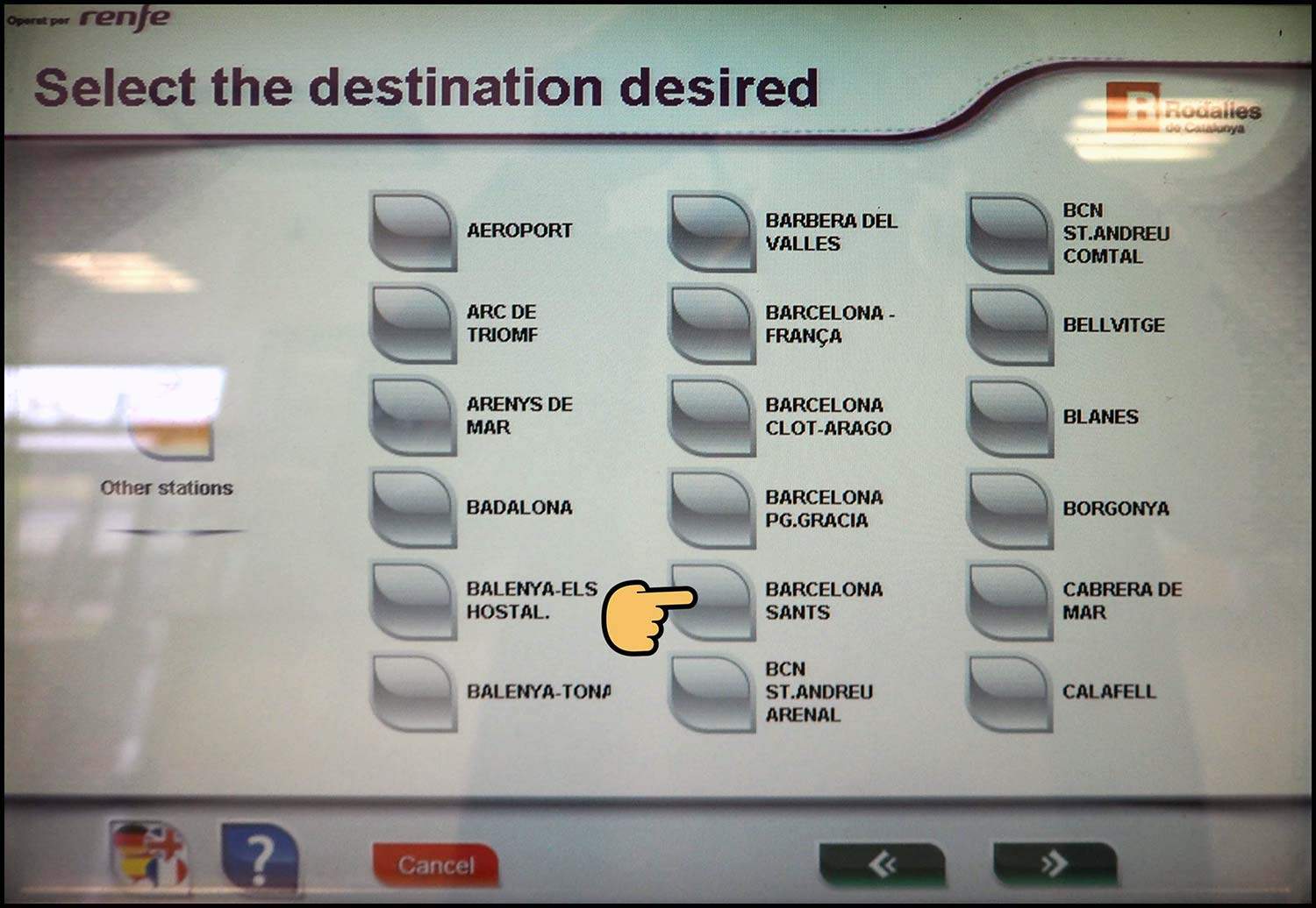 4. Следующие страницы будут содержать списки станций по алфавиту. В нашем примере выбирается станция назначения Калелья (Calella).