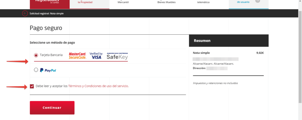 Существует множество онлайн сервисов позвооляющий заказать и получить Nota Simple самостоятельно. Разберем на примере самого популярного сервиса Registradores.org