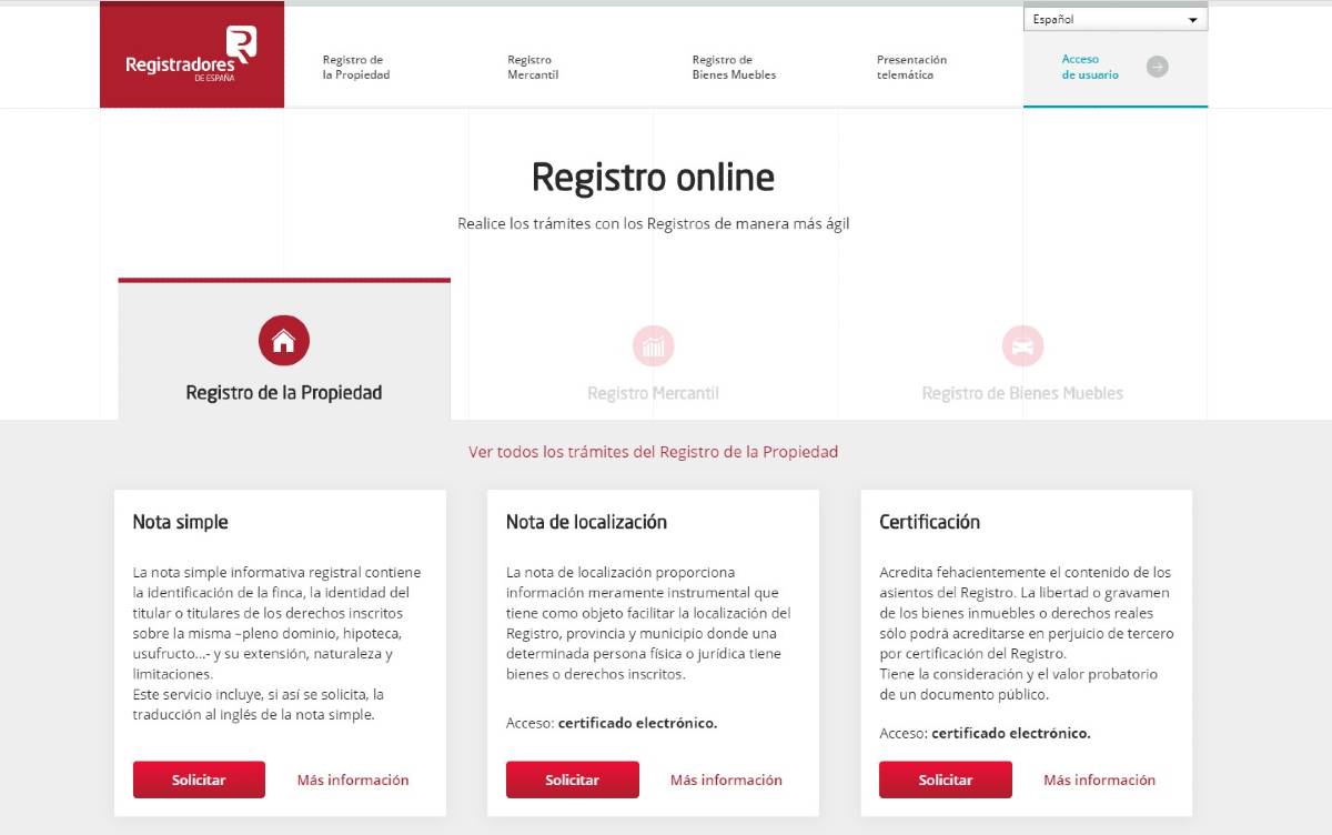 По нашим наблюдениям, в последние годы Реестры собственности все больше и больше уделяют внимание работе с собственниками недвижимости в Испании через Интернет. Все реестры собственности в стране сообщаются единой системой — Red Telemática Registral, что унифицирует технологию заказа справки из любой точки мира. Именно благодаря высокому уровню технологичности в работе реестров в большинстве случаев возможен заказ Nota Simple за несколько часов