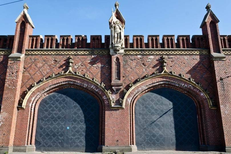 Центр опоясан воротами, с которыми туристы могут ознакомиться во время обзорной прогулки по самому западному городу России. Одним из исторических объектов культурного наследия федерального значения являются Росгартенские ворота. Они входили в систему оборонительного укрепления Кёнигсберга. Готическое строение из красного кирпича имеет довольно нехарактерный для фортификационного сооружения внешний вид. В оформлении фасада использована аркадная галерея, придающая воротам некую воздушность и элегантность.