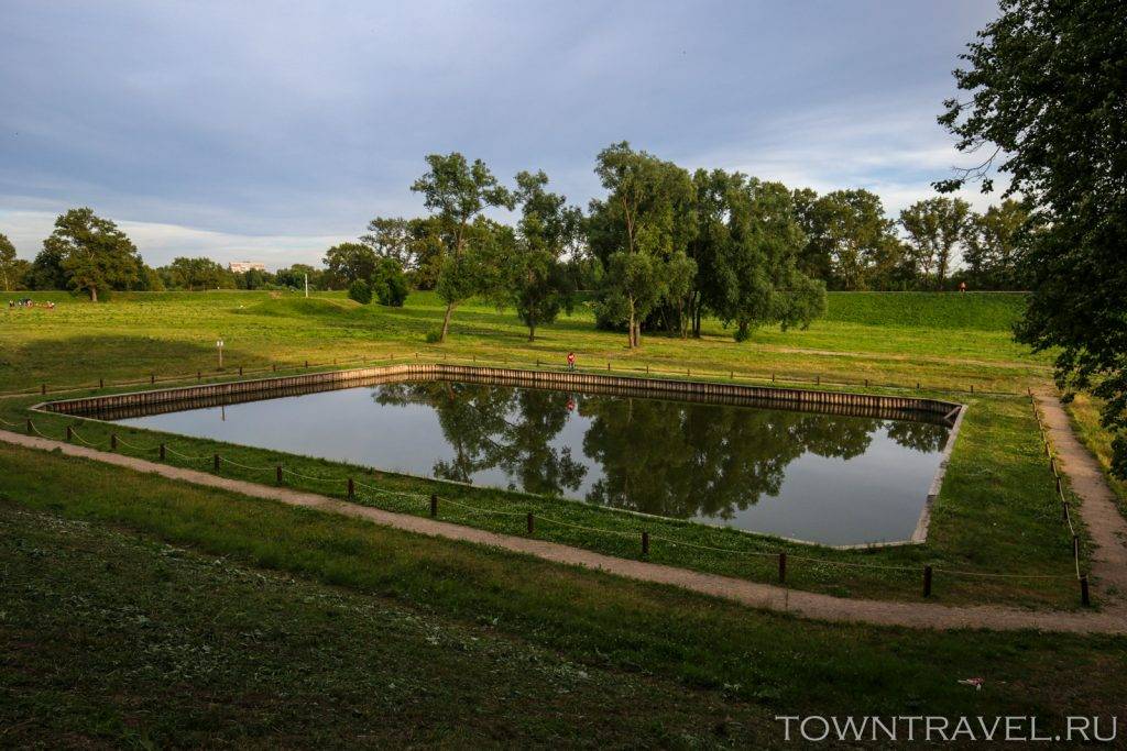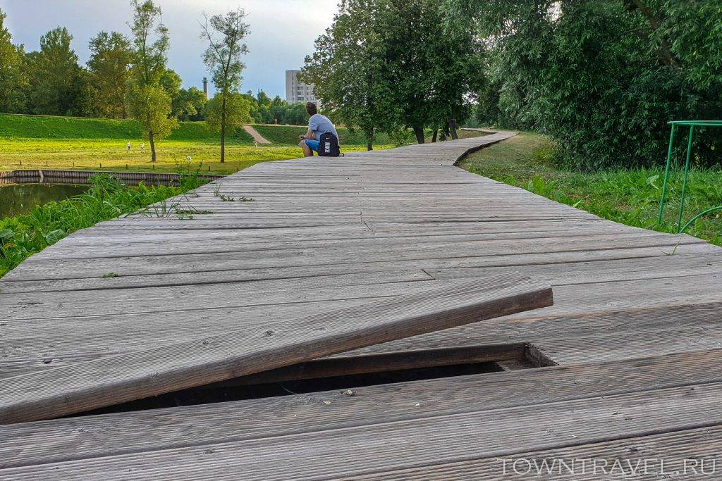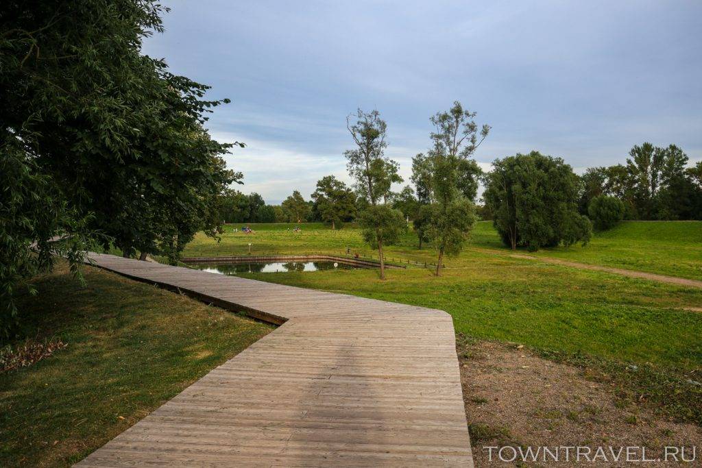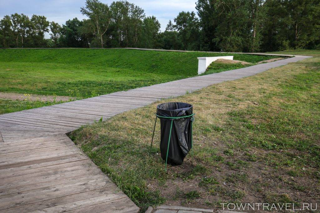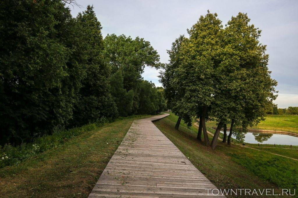 По верхушкам земляных валов проложены дощатые пешеходные дорожки.