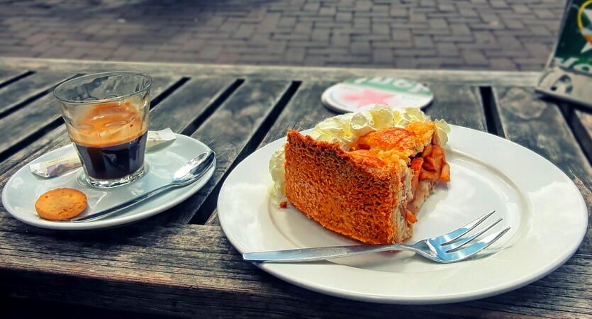 В Нидерландах очень популярны пироги. Во время прогулок по Амстердаму вы не раз увидите огромные витрины со сладкой выпечкой. Загляните в одну из «пироговых» на кофе с десертом. Первым делом закажите легендарный Limburgse vlaai. Он прост и невероятно хорош: мягкое дрожжевое тесто, сочная фруктовая начинка, слегка хрустящая верхняя корочка в виде решетки. Лимбургский пирог чаще всего подают со взбитыми сливками или шариком мороженого, обязательно теплым. Обязательно попробуйте в Амстердаме и другую выпечку, голландцы знают в ней толк.