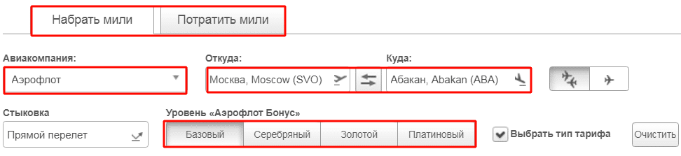 Расчет миль Аэрофлот